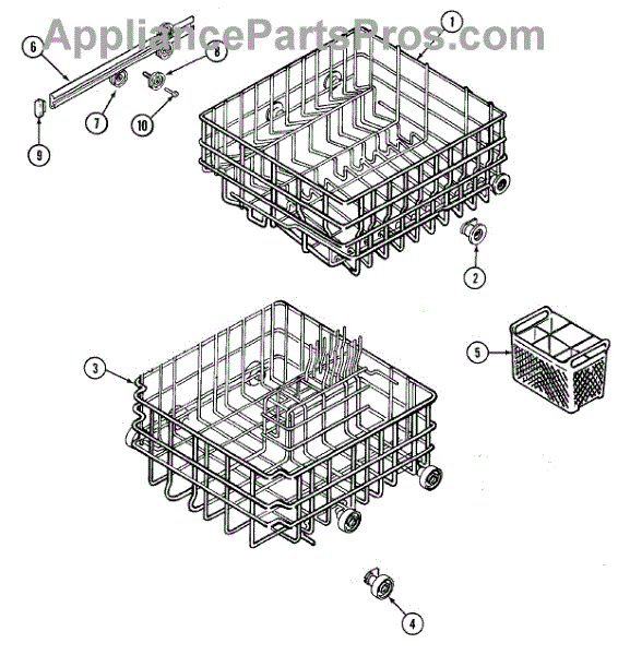 Replace your cracked, broken, or worn dishwasher silverware basket. White basket measures approximately 9"W x 7"H x 6"D. Keeps utensils organized.