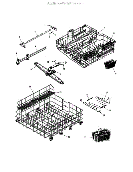 Note: New rack no longer includes removable tines or cup shelf. This part is a lower dishrack. The lower dishrack is the lower shelf of a dishwasher that holds plates, bowls, and utensils. To remove the old dishrack, simply pull it out and lift the wheels up from its track. Set it off the side, and lift the new dishrack. Slide it into its track and make sure it is locked in. If it is gliding in and out in a smooth way, it has been installed properly.This genuine replacement OEM part is sold individually and is compatible with Whirlpool brands include Whirlpool, Maytag, KitchenAid, Jenn-Air, Amana, Magic Chef, Admiral, Norge, Roper, and Sears/Kenmore brand appliances.