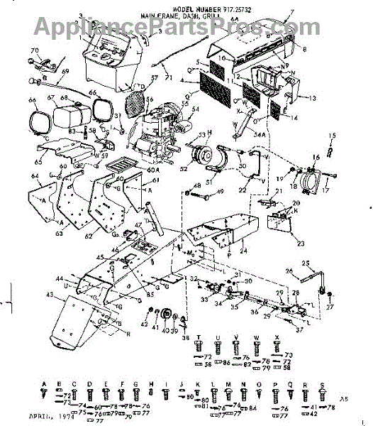Parts for Craftsman 91725732: 12 Tractor / Main Frame, Dash, Grill Parts