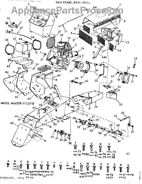 Parts for Craftsman 91725742: 16 Tractor / Main Frame, Dash, Grill Parts