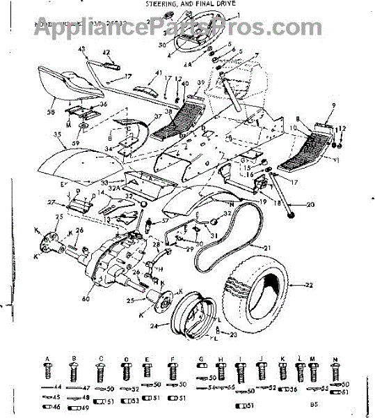 Parts for Craftsman 91725732: 12 Tractor / Steering, And Final Drive Parts