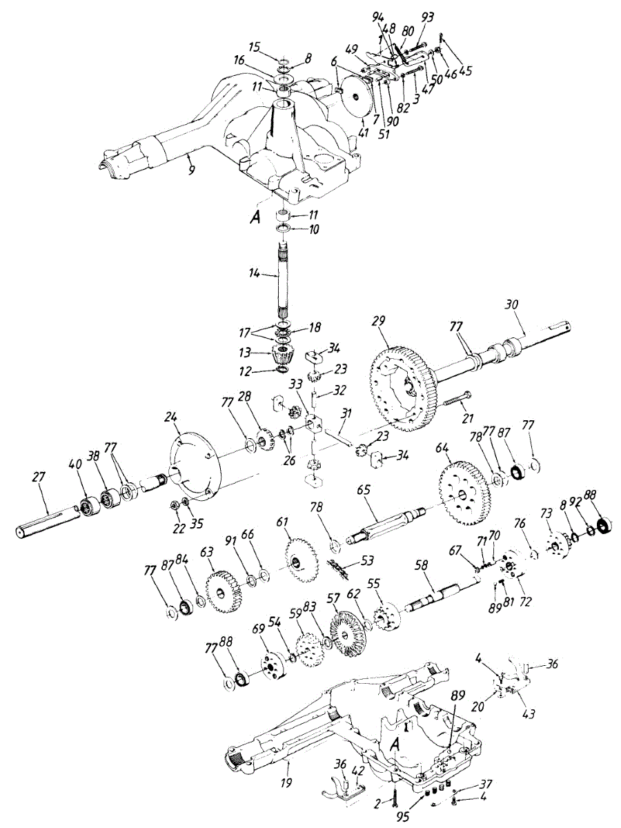 Thrust bearing reduces friction between the spindle and front axle, enabling smooth speed shifts. Replace if excessive play develops between rollers.