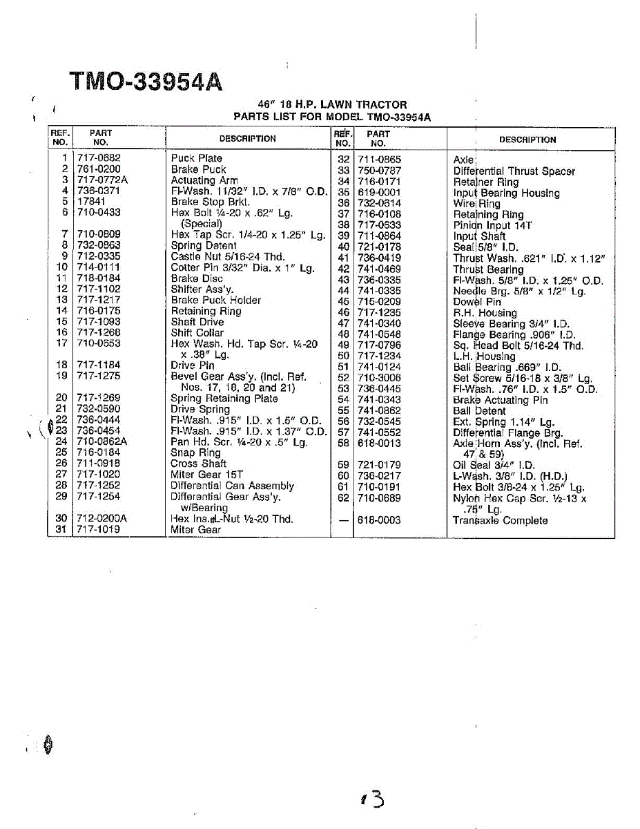 Parts for Mtd 33954A: 46" 18Hp / Transaxle Page 2 Parts
