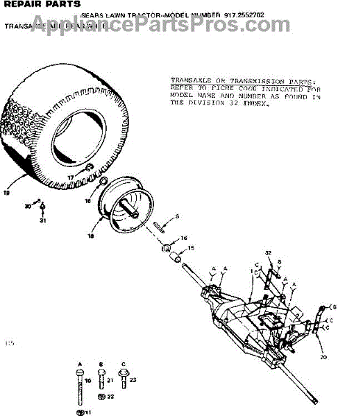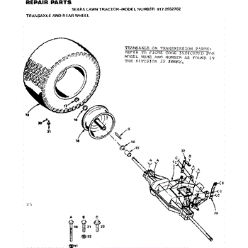 Parts for Craftsman 9172552702: Transaxle And Rear Wheel Parts