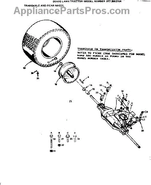 Parts for Craftsman 9172552704: Transaxle And Rear Wheel Parts