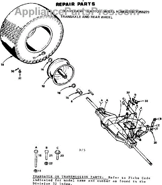Parts for Craftsman 917255273: Transaxle And Rear Wheel Parts