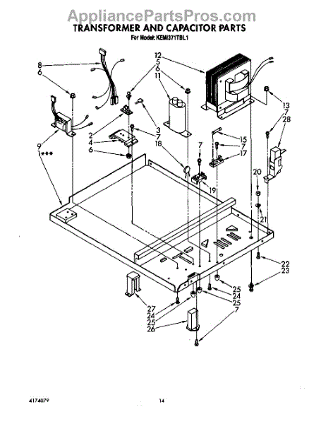 Parts for Kitchenaid KEMI371TBL1: 11 - Transformer And Capacitor Parts