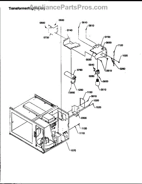 Parts for Amana RFS59MP/P1300102MX: Transformer / Light Assy Parts