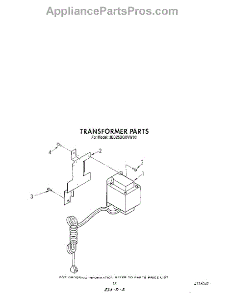 Parts for Whirlpool 3ED25DQXVW00: 10 - Transformer Parts
