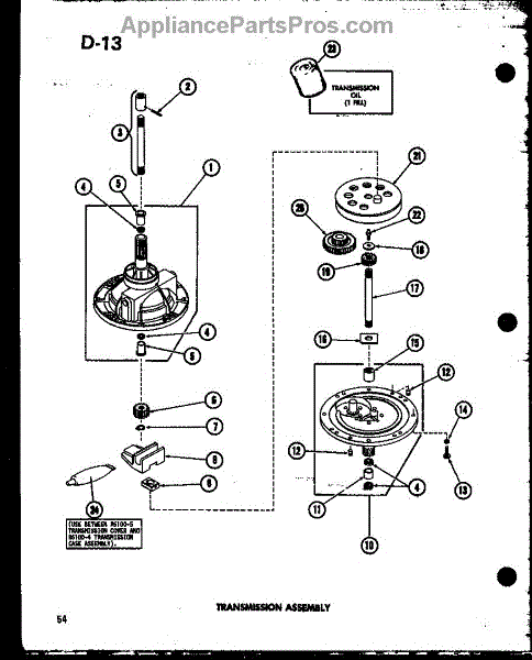Parts for Amana TAA800/P75751-7W: Transmission Assembly (Taa400 / P75751-5W) (Taa600 / P75751-6W) (Taa800 / P75751-7W) (Taa400 / P75751-2W) (Taa600 / P75751-1W) (Taa800 / P75751-3W) Parts