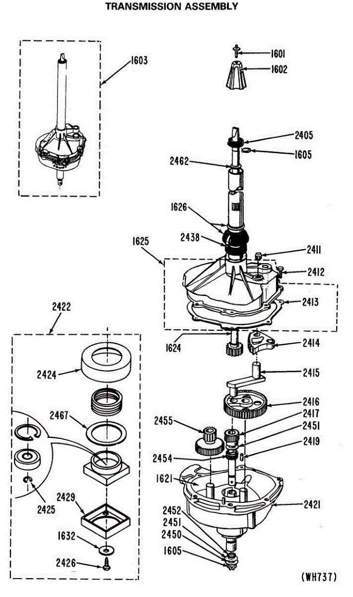 Parts for Ge WSM2700RBW: 06 - Transmission Assembly Parts