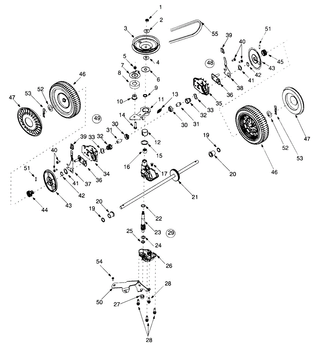 Parts for Yard Machines 12A-455G301 / 2000: Transmission Assembly & Wheels Parts