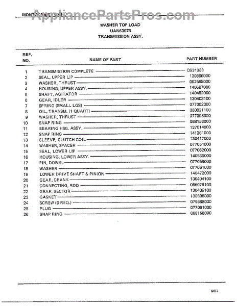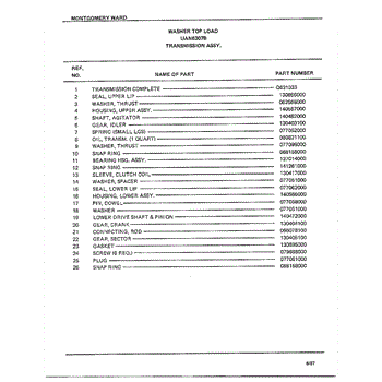 Parts for Frigidaire 6307B: Transmission Assy Page 2 Parts