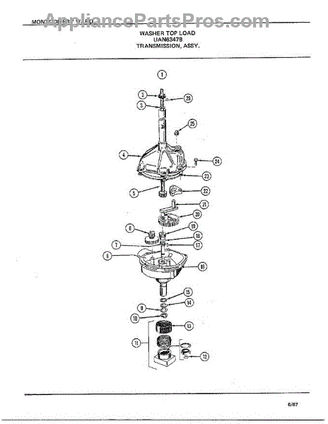 Parts for Frigidaire 6347B: Transmission Assy Parts