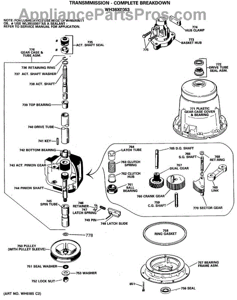 Parts for Ge WWA5857RBL: 03 - Transmission-Complete Breakdown Parts