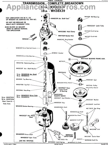 Parts for Ge WWA7070VCL: 05 - Transmission - Complete Breakdown Parts