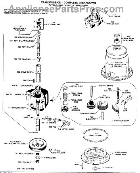 Parts for Ge WWA8320GBL: 04 - Transmission-Complete Breakdown Parts