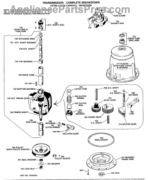 Parts for Ge WWA8324GBL: 06 - Transmission - Complete Breakdown Parts