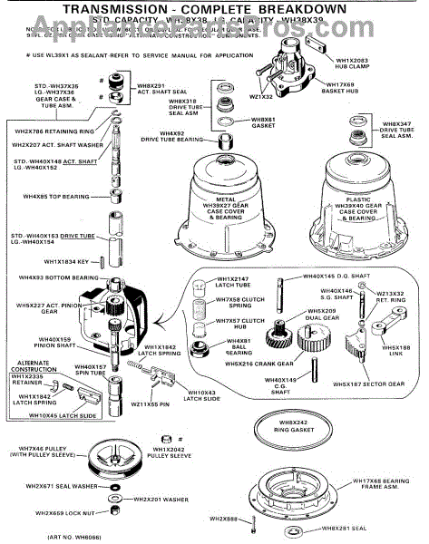 Parts for Ge WWA8340BAL: 06 - Transmission - Complete Breakdown Parts