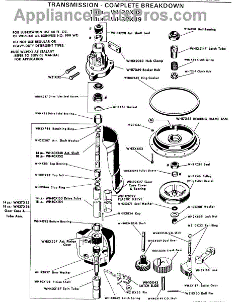 Parts for Ge WWA8344VCL: 05 - Transmission - Complete Breakdown Parts