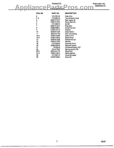 Parts for Frigidaire FWS6977E: Transmission Page 2 Parts