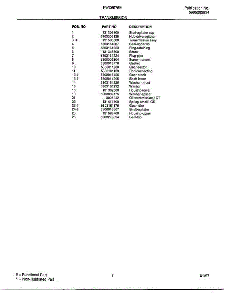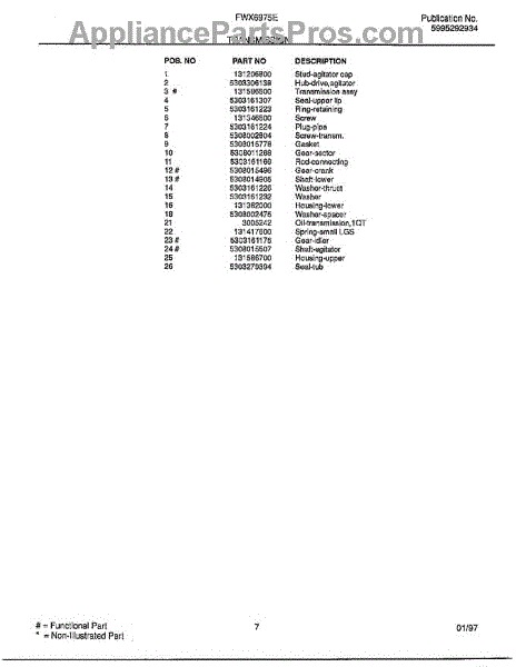 Parts for Frigidaire FWX6975E: Transmission Page 2 Parts