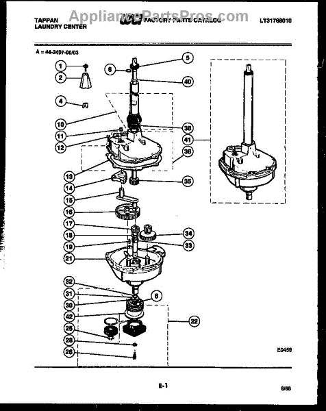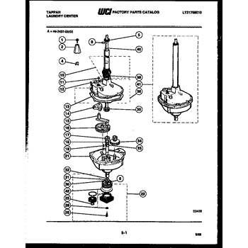 This transmission assembly drives the agitation and spin cycles by transferring motor power to the tub. Replacing a worn transmission helps restore proper wash action and spin performance.