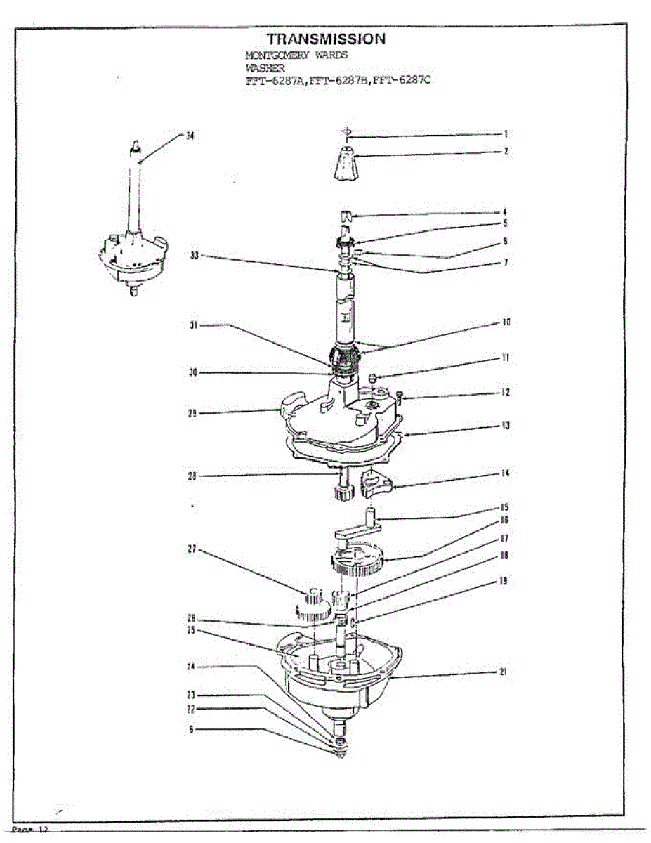 Agitator rod and gear kit for washers. Connects the agitator to the drive system. Replace if gears are stripped, worn, or rod is broken or damaged.
