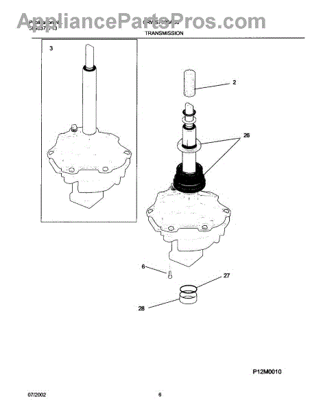 This is a transmission assembly for washing machines. The transmission assembly is the gearbox in the washing machine's motor that allows the washing machine to work at different speeds and different intensities. If the washing machine is no longer spinning properly and has lost its normal level of washing power, it could mean that the transmission assembly needs to be replaced. Luckily, replacing this part is not as difficult as it might seem at first glance.To replace the transmission assembly, begin by unplugging the washing machine. The first step is to remove the upper control panel. Pull forward on the bottom of the console and remove the two retaining clips as well as the harness connector to the lid switch. Using a flathead screwdriver remove the clips. After this, remove the entire cabinet from the back panel to gain access to the interior of the washer. Remove the 7/16 bolt from the agitator and pull it straight up to remove it from the shaft. Once completed, gain access to the motor and pump and remove by releasing the screws and tabs that attach it. Remove the wire harness attached to the transmission. Remove the bolts that secure the motor mount to the transmission and proceed to pull the old transmission out of its place. Install the new transmission and reassemble the other parts.This genuine OEM replacement part is compatible with Frigidaire, Electrolux, Gibson, Kelvinator, and Westinghouse washers. It is sold individually.