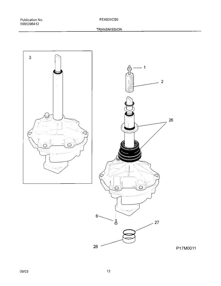 This replacement spacer positions the transmission bearing block to help maintain proper alignment and drivetrain spacing for reliable washer operation. It restores correct fit where worn or damaged spacers cause misalignment. What it does