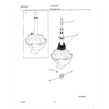 This transmission assembly drives the agitation and spin cycles by transferring motor power to the tub. Replacing a worn transmission helps restore proper wash action and spin performance.
