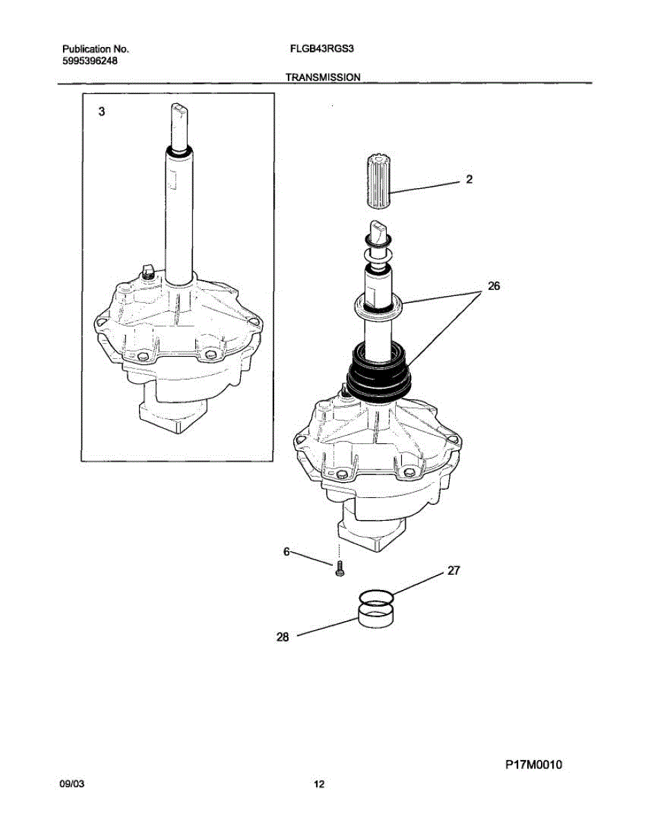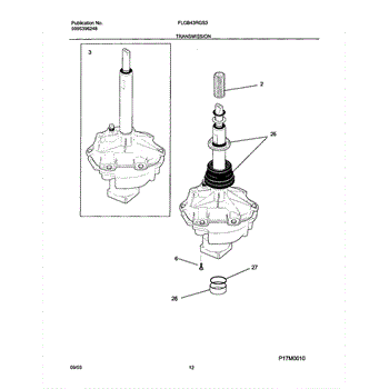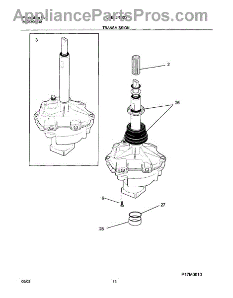 This transmission assembly drives the agitation and spin cycles by transferring motor power to the tub. Replacing a worn transmission helps restore proper wash action and spin performance.