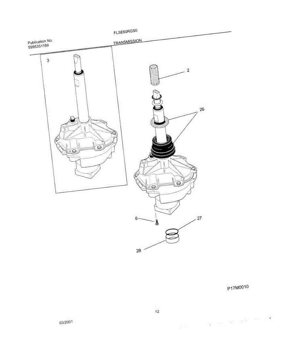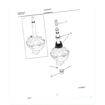 This transmission assembly drives the agitation and spin cycles by transferring motor power to the tub. Replacing a worn transmission helps restore proper wash action and spin performance.
