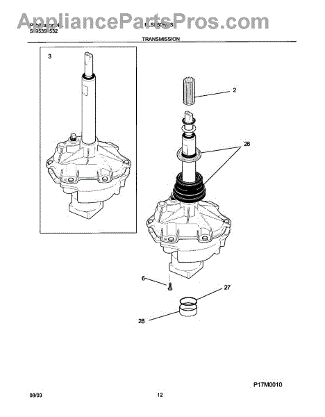 Parts for Frigidaire FLSE60RGS2: 13 - Transmission Parts
