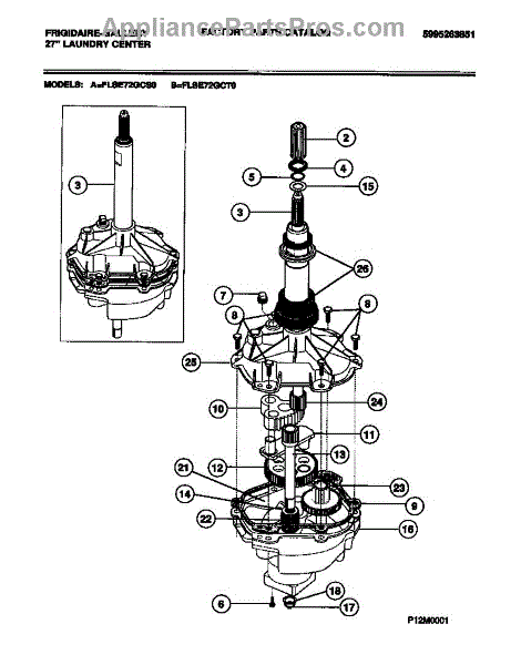 This transmission assembly drives the agitation and spin cycles by transferring motor power to the tub. Replacing a worn transmission helps restore proper wash action and spin performance.