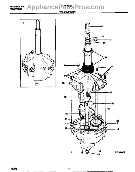 This transmission assembly drives the agitation and spin cycles by transferring motor power to the tub. Replacing a worn transmission helps restore proper wash action and spin performance.