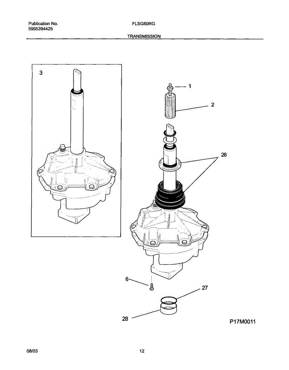 This replacement spacer positions the transmission bearing block to help maintain proper alignment and drivetrain spacing for reliable washer operation. It restores correct fit where worn or damaged spacers cause misalignment. What it does