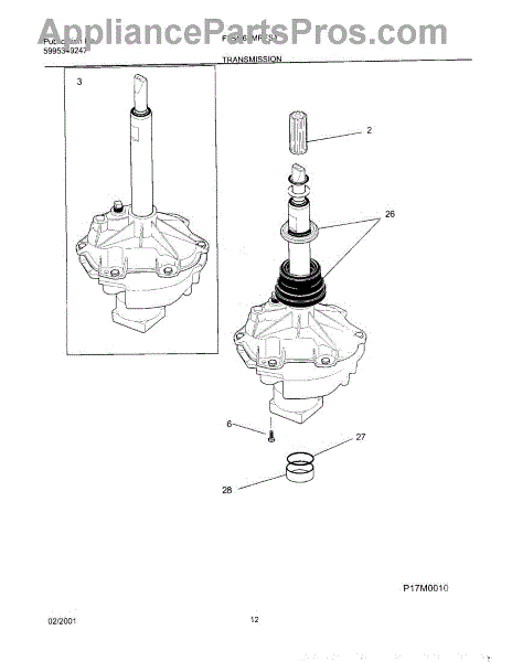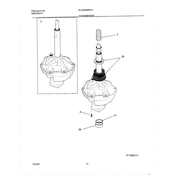 This transmission assembly drives the agitation and spin cycles by transferring motor power to the tub. Replacing a worn transmission helps restore proper wash action and spin performance.