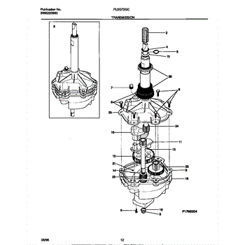 This transmission assembly drives the agitation and spin cycles by transferring motor power to the tub. Replacing a worn transmission helps restore proper wash action and spin performance.