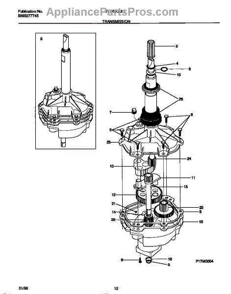 This transmission assembly drives the agitation and spin cycles by transferring motor power to the tub. Replacing a worn transmission helps restore proper wash action and spin performance.