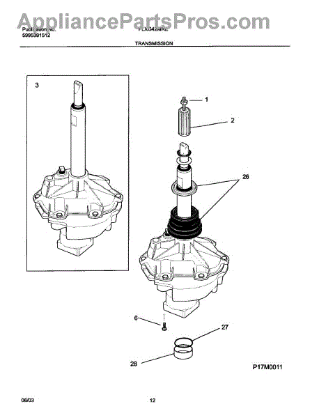 This replacement spacer positions the transmission bearing block to help maintain proper alignment and drivetrain spacing for reliable washer operation. It restores correct fit where worn or damaged spacers cause misalignment. What it does