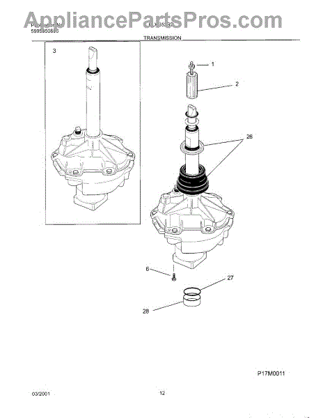 Positions the transmission bearing block for proper alignment in your washer. Replace if worn, damaged, or missing to restore correct drivetrain spacing.
