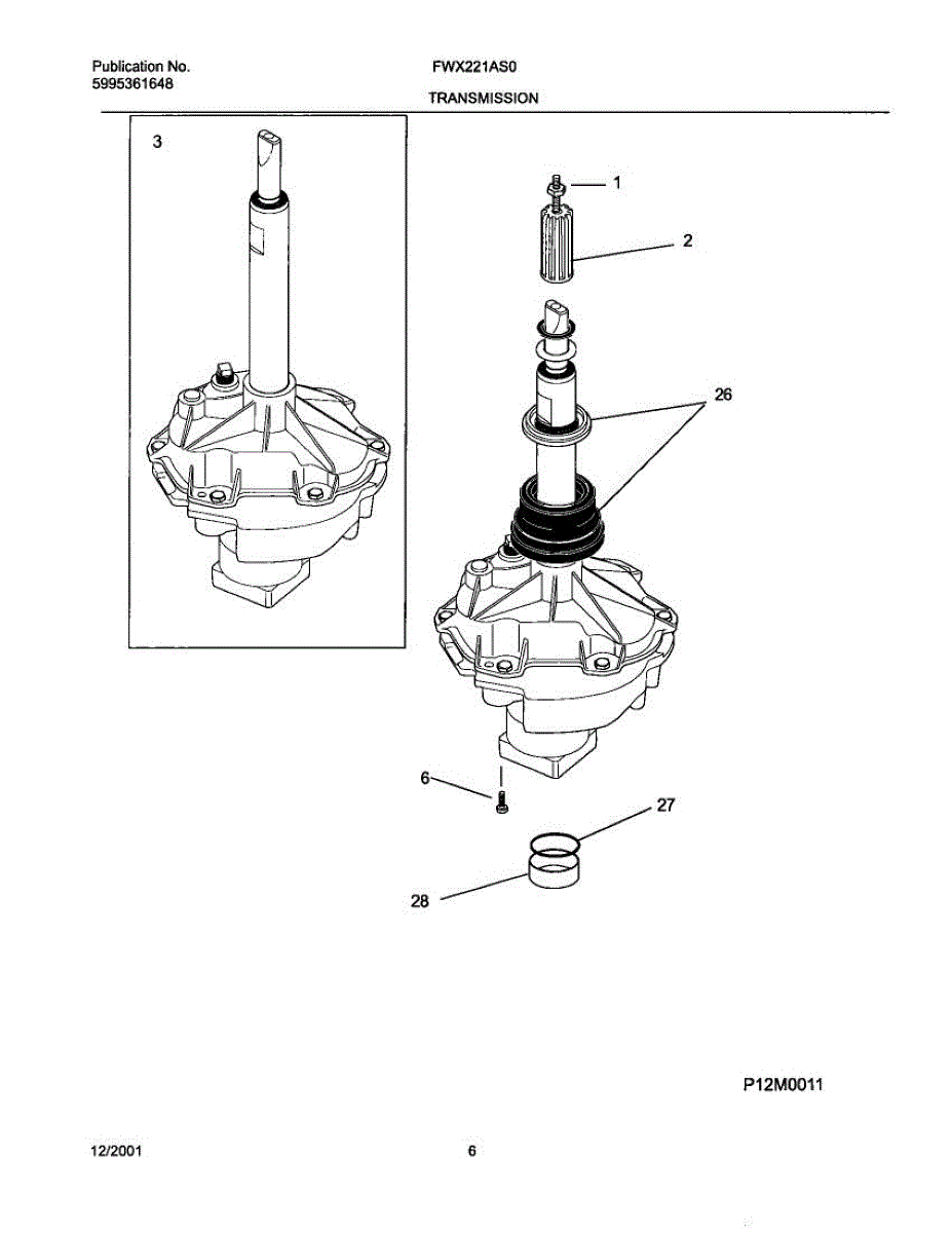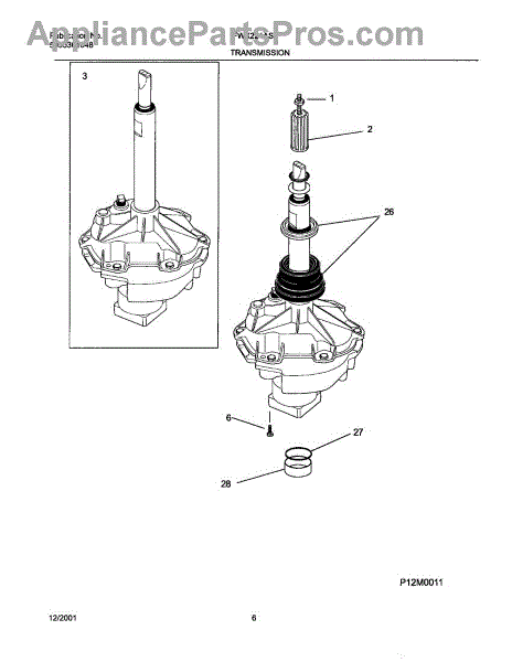 This replacement spacer positions the transmission bearing block to help maintain proper alignment and drivetrain spacing for reliable washer operation. It restores correct fit where worn or damaged spacers cause misalignment. What it does