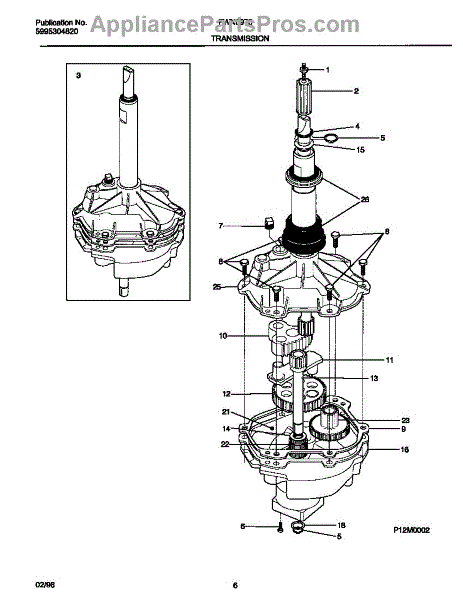 Parts for Frigidaire FWX6975EW2: 04 - Transmission Parts