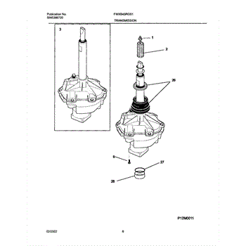 This replacement spacer positions the transmission bearing block to help maintain proper alignment and drivetrain spacing for reliable washer operation. It restores correct fit where worn or damaged spacers cause misalignment. What it does