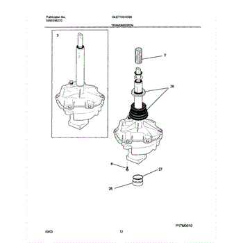 This transmission assembly drives the agitation and spin cycles by transferring motor power to the tub. Replacing a worn transmission helps restore proper wash action and spin performance.