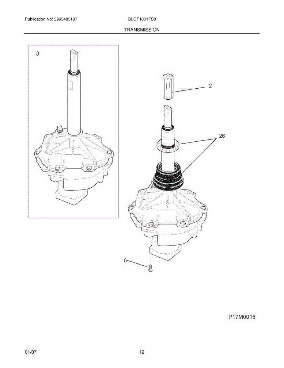 This transmission assembly drives the agitation and spin cycles by transferring motor power to the tub. Replacing a worn transmission helps restore proper wash action and spin performance.