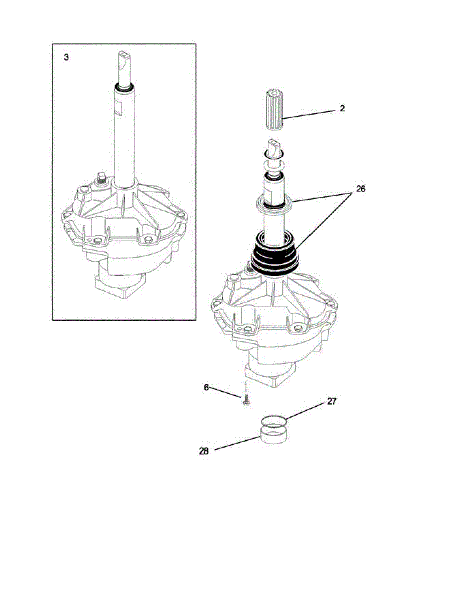 • Access requires removing the washer cabinet/tub and supporting the transmission; keep track of fasteners and orientation.