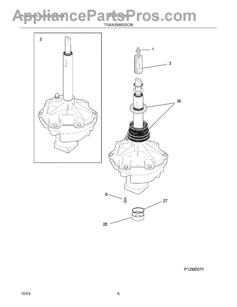 This replacement spacer positions the transmission bearing block to help maintain proper alignment and drivetrain spacing for reliable washer operation. It restores correct fit where worn or damaged spacers cause misalignment. What it does