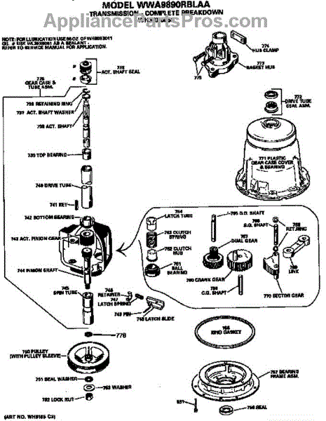 Parts for Ge WWA9890RBLAA: Transmission Parts